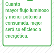 - La potencia que consume ese producto expresado en watt. Cuanto mayor flujo luminoso y menor potencia consumida, mejor será su eficiencia energética.